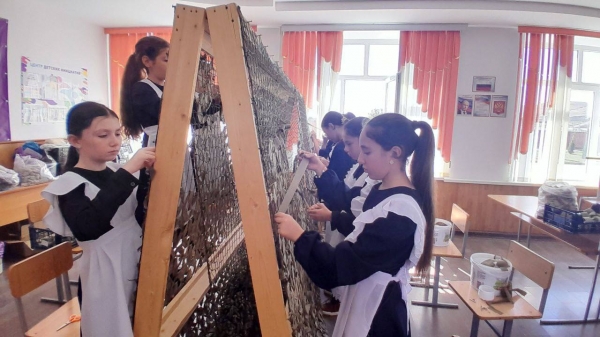 Учащиеся  МБОУ "СОШ а. Малый Зеленчук имени Героя Советского Союза Умара Хабекова"плетут маскировочные сети для участников СВО. Эта работа очень нужна и важна для наших бойцов.