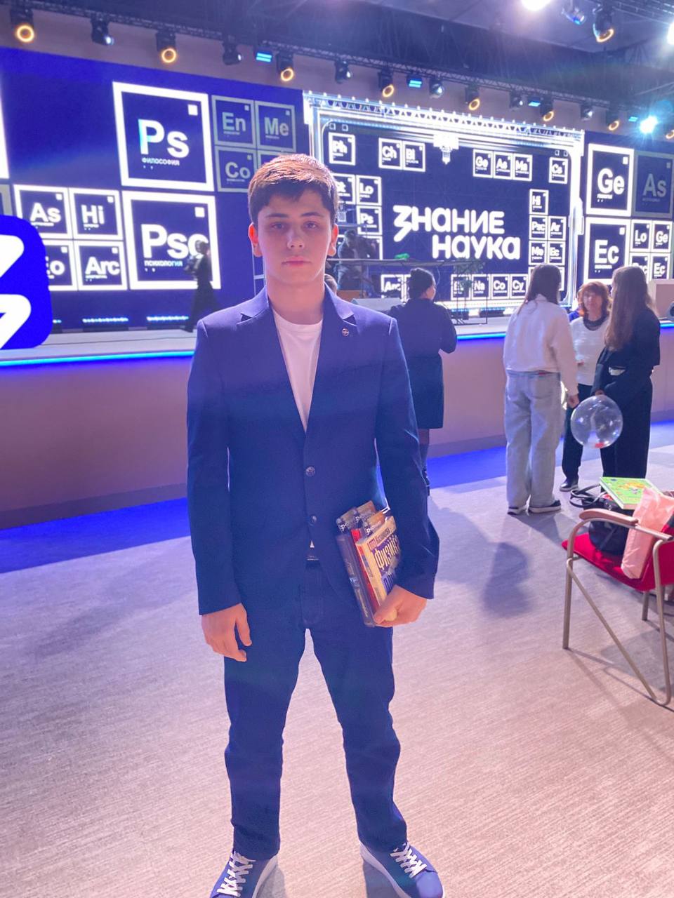 Ученик 10 гуманитарного класса МБОУ "ОЛИ а.Хабез имени Хапсироковой Е.М." РУСТАМ КЯТОВ принимает участие в просветительском марафоне "Знание.Наука" в г.Москве.